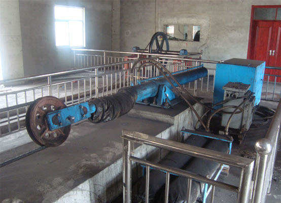 本裝置是根據帶式輸送機的特性而設計的,起拉力和正常運行拉力可根據帶式輸送機張力的需要任意調節,完全可以實現起動力為正常運行時1.3-1.5倍的要求。電液系統以但調節后,拉緊裝置即按預訂程序自動工作,保證輸送帶在理想狀態下運行。因此,配置此拉緊裝置的的帶式輸送機可以減少輸送帶厚度。